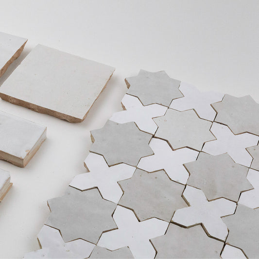 Zellige Classique Atlas White/Blanc/Gris Perle Chouari