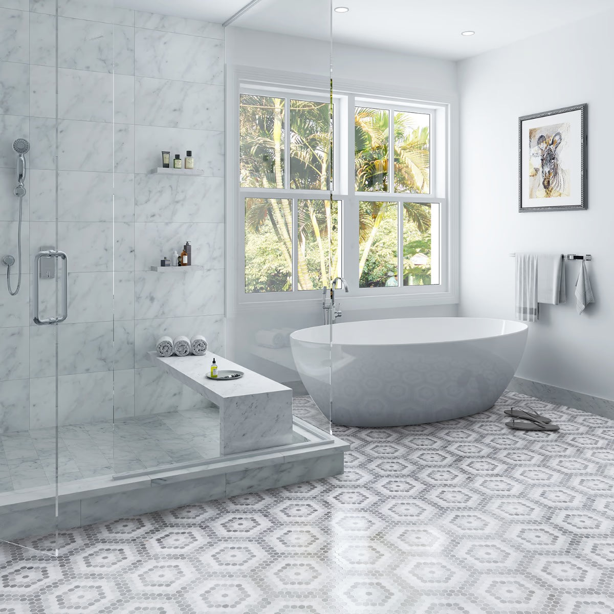 Helios Black & White Honeycomb is a beautiful marble mosaic.
