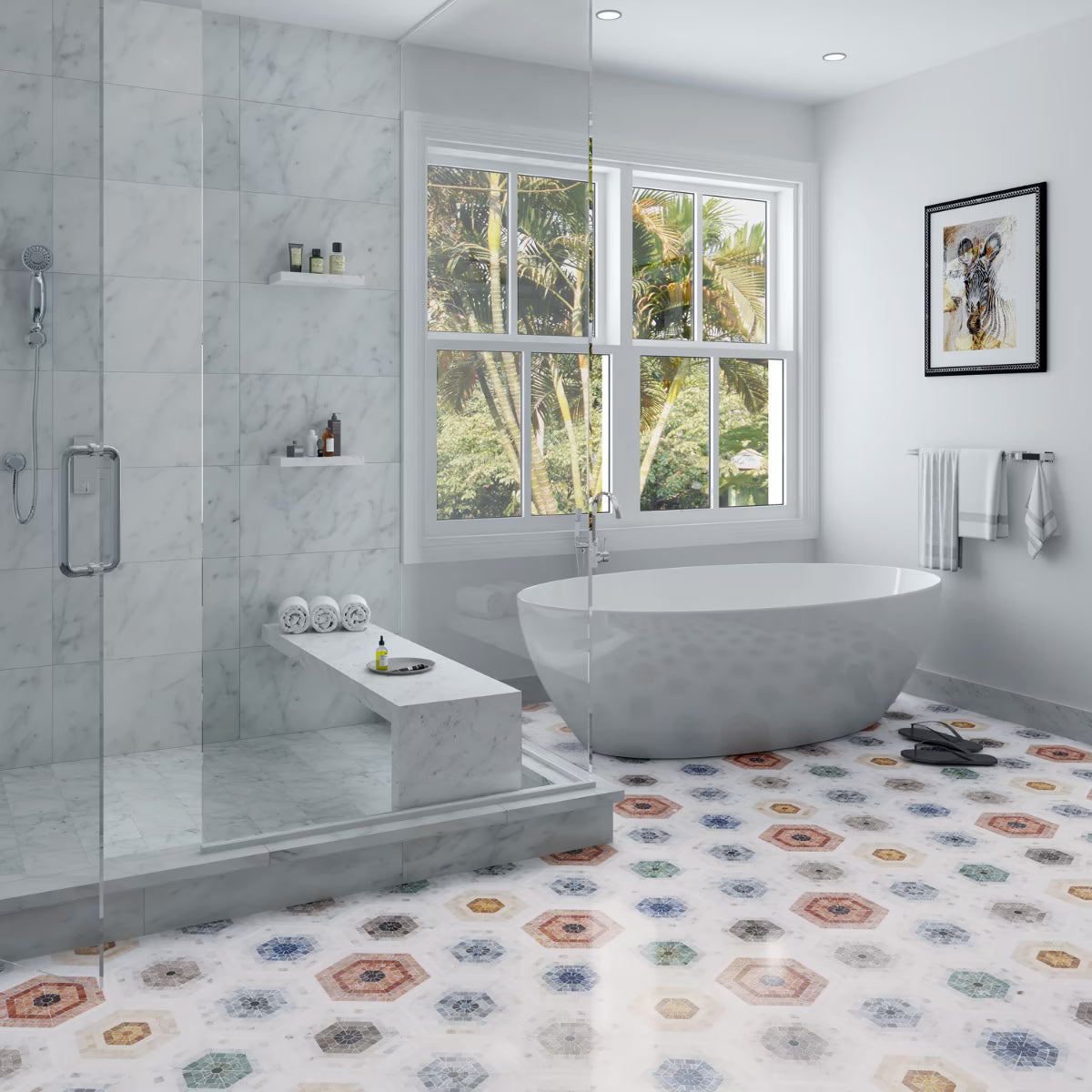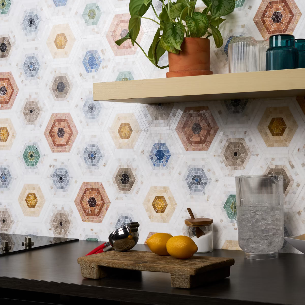 Imogen Multicolor Mix Hex is a beautiful natural stone mosaic.