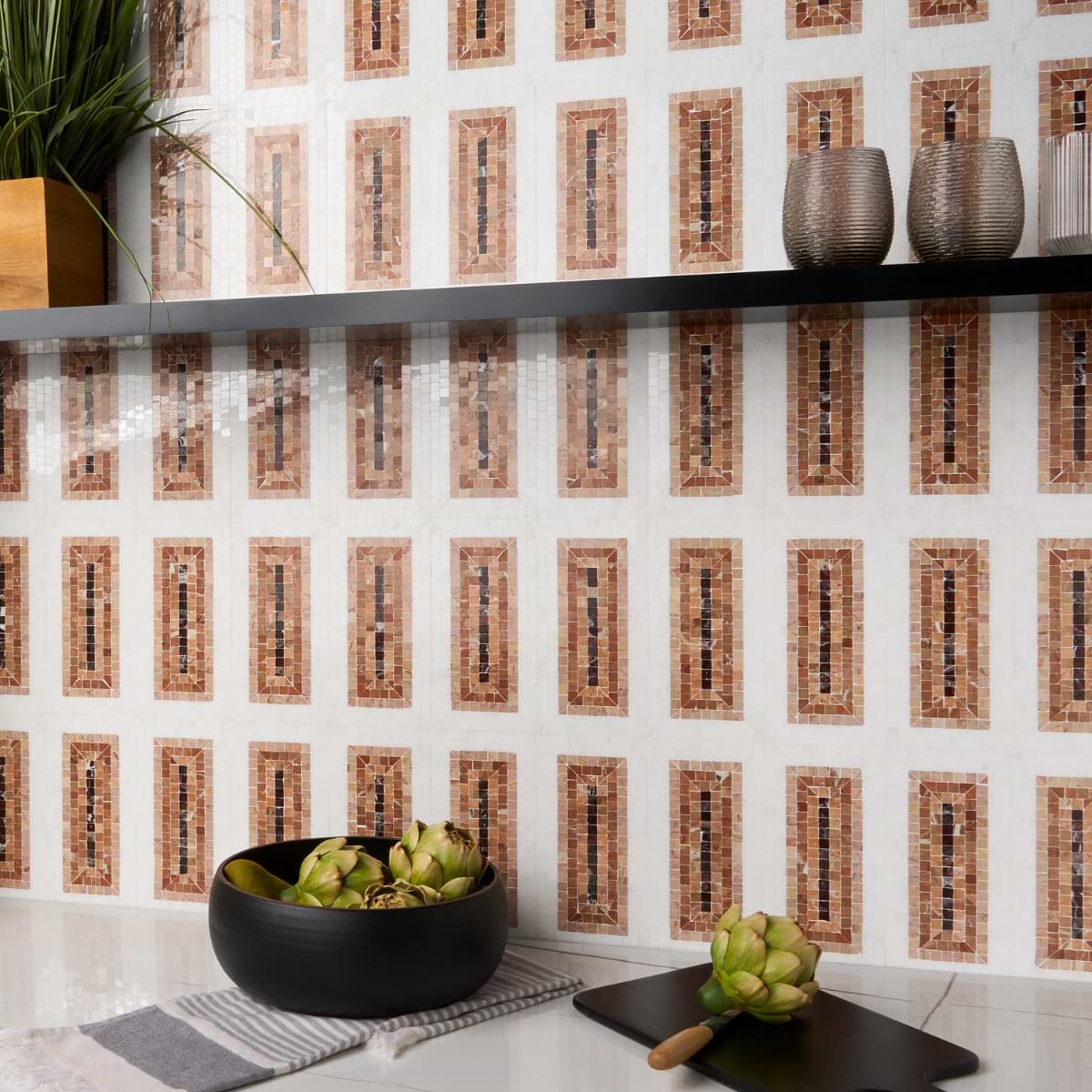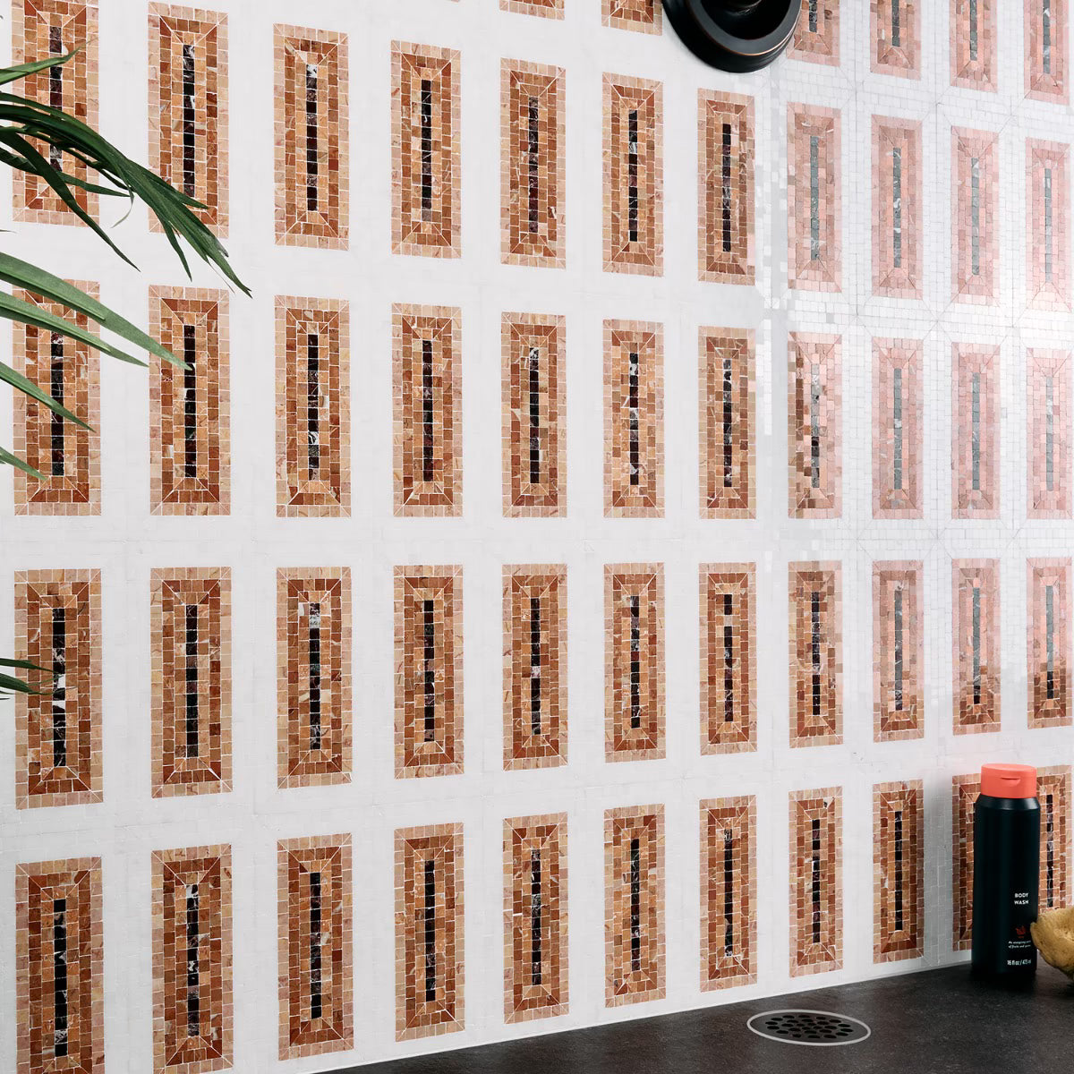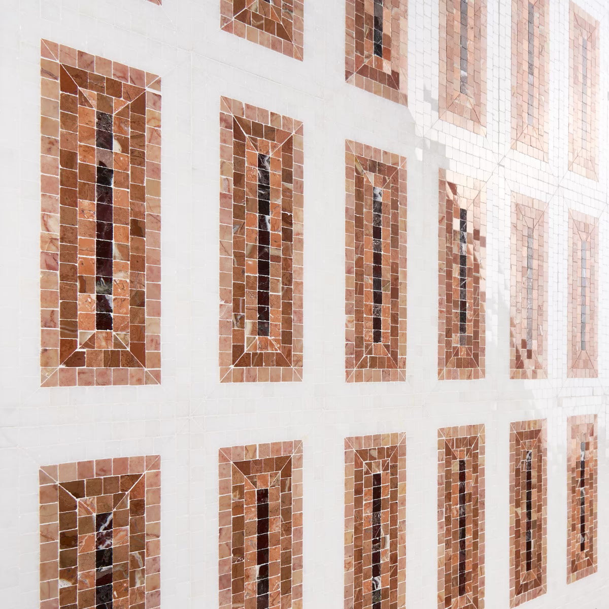 Imogen Terracotta Rosa 4x9 is a beautiful natural stone mosaic.