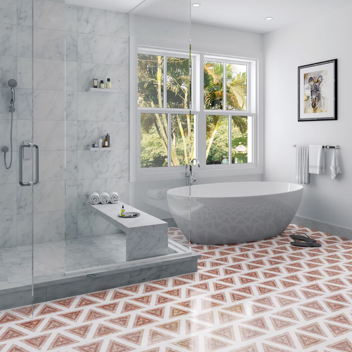 Imogen Terracotta Rosa Triangle is a beautiful natural stone mosaic.